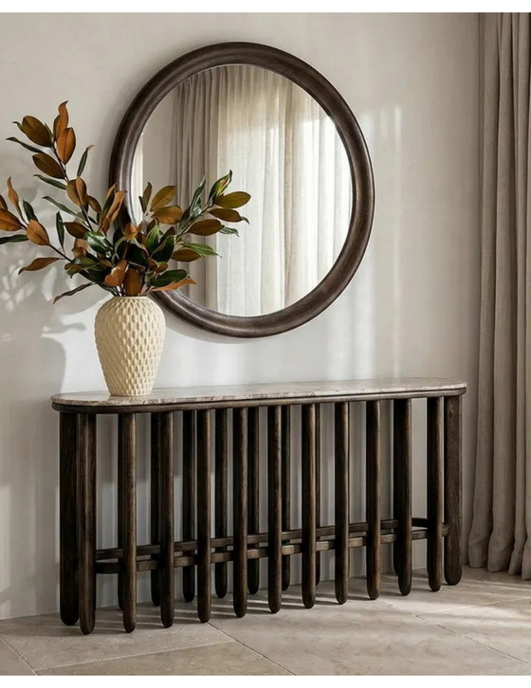 Consola Moderna en Madera y Mármol 160x40x76 cm
