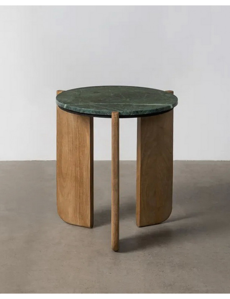 Mesita de Centro Baja en Madera y Mármol Verde 80x80x35 cm