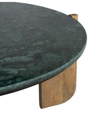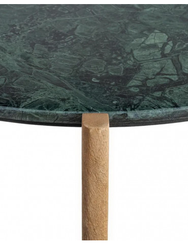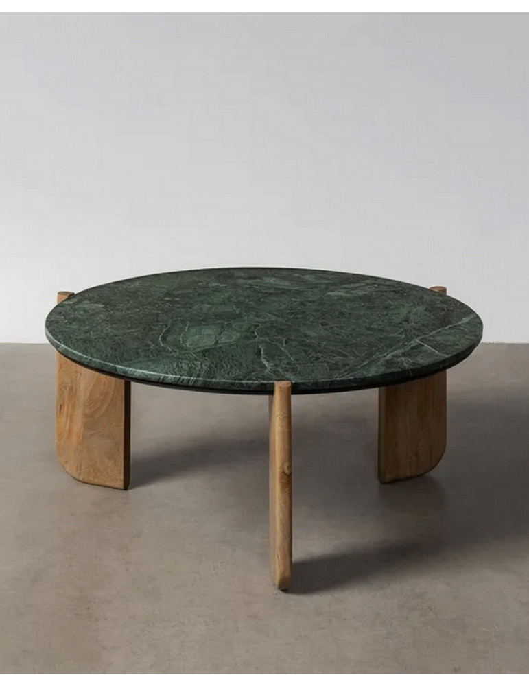 Mesita de Centro Baja en Madera y Mármol Verde 80x80x35 cm