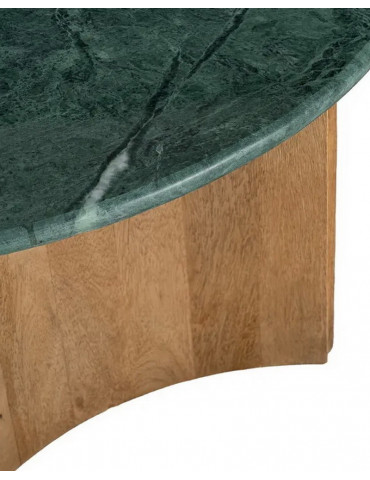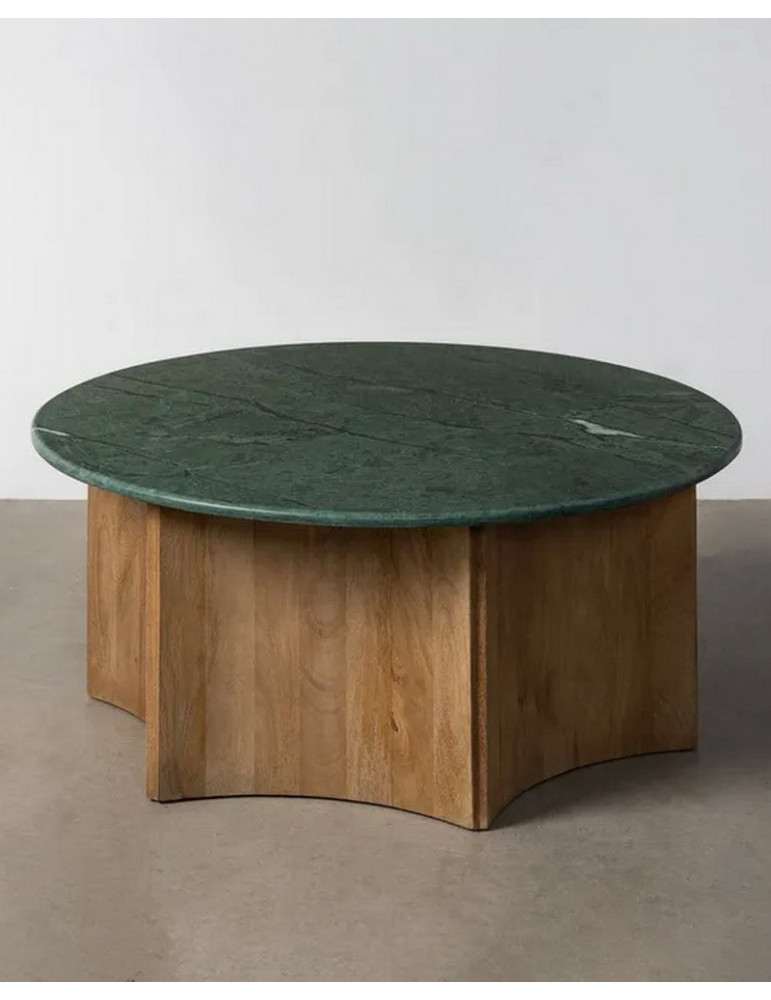 Mesita de Centro Baja en Madera y Mármol Verde 80x80x35 cm